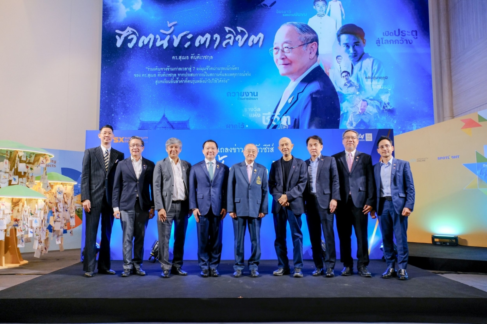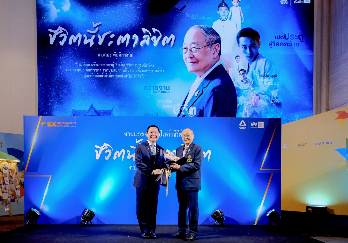 คุณฐาปน สิริวัฒนภักดี ประธานเจ้าหน้าที่บริหาร บริษัท ไทยเบฟเวอเรจ จำกัด (มหาชน) พร้อมด้วยคณะผู้บริหาร ร่วมแสดงความยินดี ดร.สุเมธ ตันติเวชกุล ในงานแถลงข่าว เปิดตัวซีรีส์ “ชีวิตนี้ชะตาลิขิต” ถ่ายทอดเรื่องราวและบทเรียนชีวประวัติของ ดร.สุเมธ ตันติเวชกุล กรรมการและเลขาธิการมูลนิธิชัยพัฒนา บันทึกชีวิต 7 รอบนักษัตรตั้งแต่วัยเยาว์จวบจนปัจจุบัน จากตัวหนังสือสู่ซีรีส์บนจอโทรทัศน์ที่จะพาผู้ชมซึมซับบรรยากาศย้อนวันวานและสถานที่จริง จำนวน 7 ตอน พร้อมออนแอร์ให้ชมทางช่อง Amarin TV HD ช่อง 34 ที่จัดขึ้น ณ ศูนย์การประชุมแห่งชาติสิริกิติ์