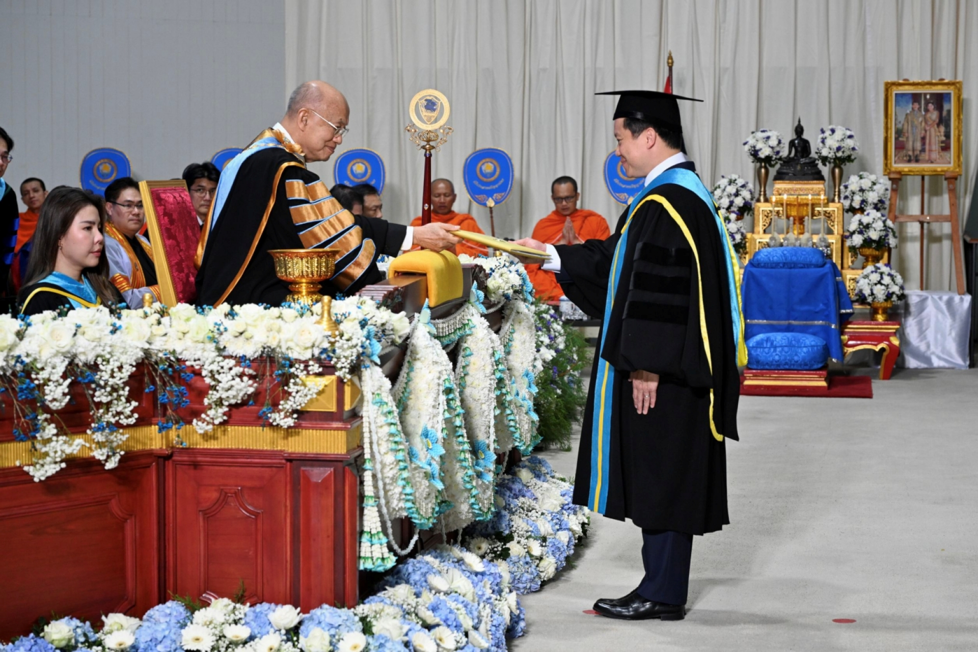 นายฐาปน สิริวัฒนภักดี ประธานเจ้าหน้าที่บริหาร บริษัท ไทยเบฟเวอเรจ จำกัด (มหาชน) เข้ารับมอบปริญญาศิลปศาสตรดุษฎีบัณฑิตกิตติมศักดิ์ สาขาวิชาการประกอบการ