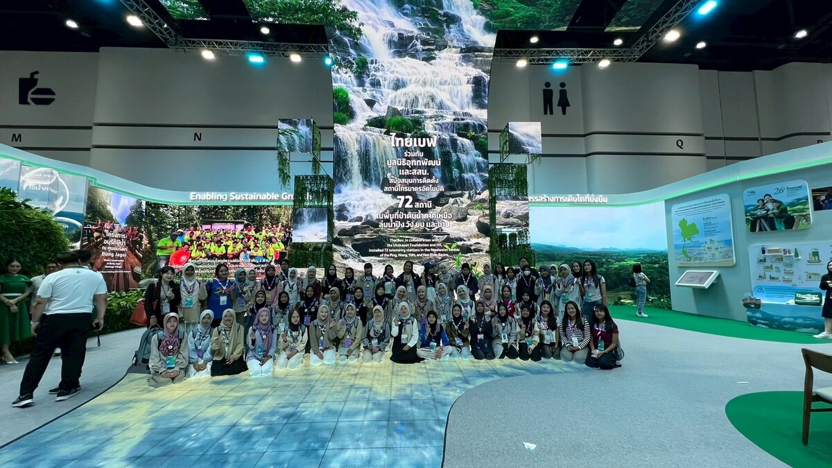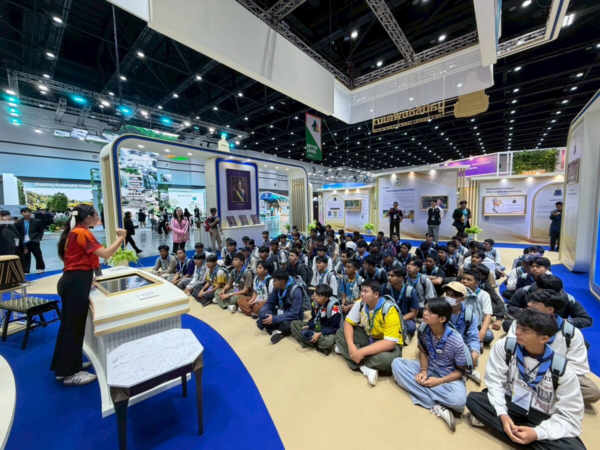 เมื่อวันจันทร์ 3 ตุลาคม 2568 คณะเยาวชน โครงการ “สานใจไทย สู่ใจใต้” รุ่นที่ 45 จากพื้นที่ 5 จังหวัดชายแดนใต้ จำนวน 320 คน ได้แก่ จังหวัดปัตตานี นราธิวาส สตูล ยะลา และสงขลา ได้เข้าเยี่ยมชมและเรียนรู้ศึกษาแนวทางขับเคลื่อนชุมชน ผ่านนิทรรศการแห่งความยั่งยืน Sustainability Expo 2025 จัดโดย บริษัท ไทยเบฟเวอเรจ จำกัด (มหาชน) ณ ศูนย์การประชุมแห่งชาติสิริกิติ์ เพื่อนำความรู้ที่ได้กลับไปพัฒนาบ้านเกิดตัวเอง ภายในงานน้องๆ ได้พบกับนิทรรศการความยั่งยืนจากหน่วยงานชั้นนำของประเทศ พร้อมเรียนรู้แนวทางการดำเนินการ Repartment Store เพื่อสร้างคุณค่าให้กับ “สิ่งของของนอกสายตา” เพื่อส่งต่อสิ่งของที่เราไม่ได้ใช้แล้ว ส่งต่อผู้ที่ยังต้องการสิ่งของนั้น ทำให้เกิดระบบหมุนเวียนทรัพยากรที่ทรงคุณค่า และก่อให้ประโยชน์กับทุกคนทั้งผู้ให้และผู้รับ ซึ่งสามารถนำของเหล่านั้นกลับมาใช้ประโยชน์ต่อได้ และยังเป็นการลดปริมาณของเหลือทิ้งให้กับโลก อีกทั้งยังได้รับความรู้ ประสบการณ์ และการสร้างแรงบันดาลใจในการเริ่มต้นทำธุรกิจจากนักศึกษา โครงการ Beta Young Entrepreneur มหาวิทยาลัยหอการค้าไทย ที่ได้มาแบ่งปันเรื่องราวการทำธุรกิจตั้งแต่เริ่มต้น ซึ่งในระหว่างทางมีการพัฒนา ปรับปรุง และต่อยอดจนสามารถนำมาเป็นอาชีพได้ เพื่อประโยชน์ให้น้องๆ นำกลับไปประยุกต์ใช้ในพื้นที่ 5 จังหวัดชายแดนใต้อย่างยั่งยืนต่อไป