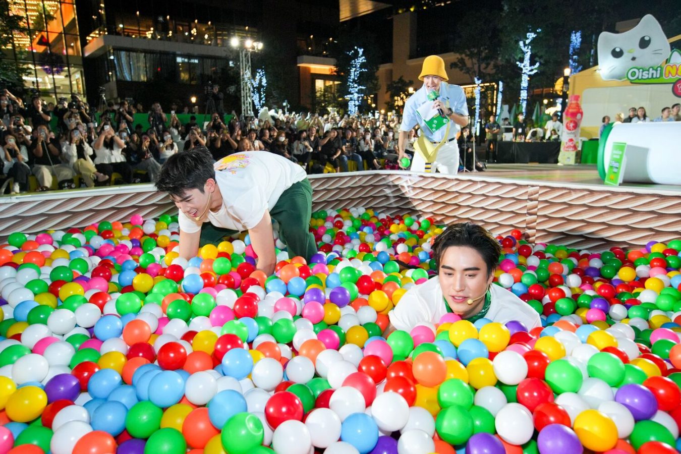 งานนี้ โออิชิ กรีนที เนรมิต One Bangkok Park ให้กลายเป็น ‘หมู่บ้านแมวญี่ปุ่น’ เปิดบ้าน โออิชิ คลับ ให้แฟน ๆ เยี่ยมชมแต่ละห้องซึ่งจำลองฟีเจอร์ใหม่ของแอป พร้อมร่วมกิจกรรมสุดสนุก และชมการแข่งขันเกม “โออิชิเนโกะ บันไดแมว…เมี๊ยววว” ของ 4 หนุ่ม โดยแบ่งเป็น 2 ทีม เจมีไนน์-โฟร์ท VS สกาย-นานิ สร้างทั้งเสียงหัวเราะและโมเมนต์ฟินทั้งออฟไลน์และออนไลน์