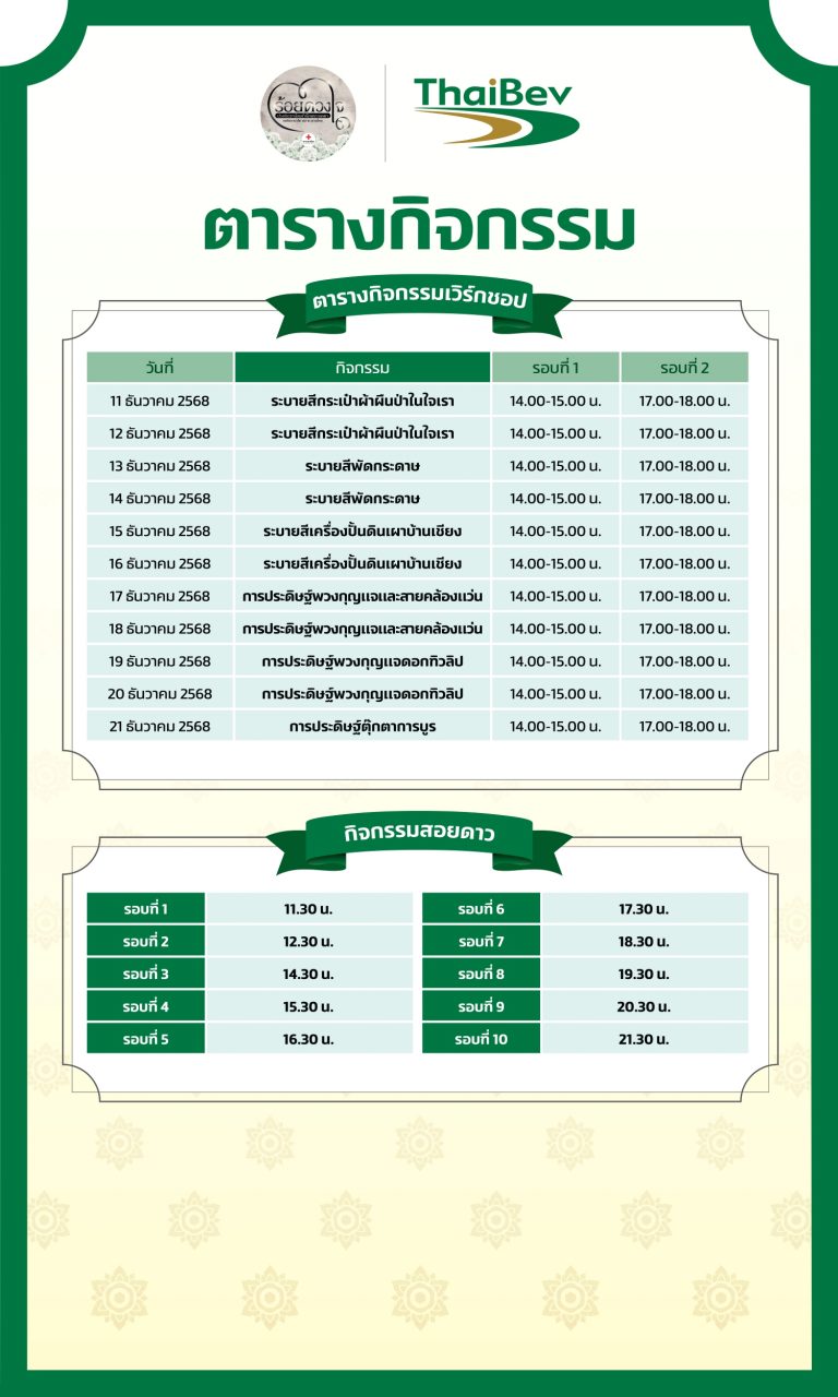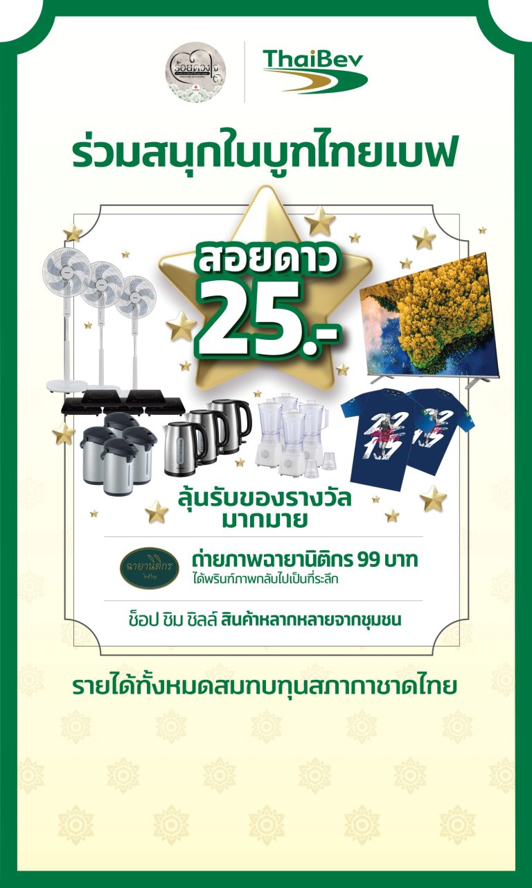 บริษัท ไทยเบฟเวอเรจ จำกัด (มหาชน) (“ไทยเบฟ”) ร่วมสนับสนุนการจัดงานกาชาดประจำปี 2568 ที่จัดขึ้นภายใต้แนวคิด “ร้อยดวงใจปวงประชา น้อมสำนึกพระเมตตา องค์สภานายิกาสภากาชาดไทย” ที่จัดขึ้นระหว่างวันที่ 11 – 21 ธันวาคม 2568 เวลา 11.00-22.00 น. สวมลุมพินี ด้วยการร่วมออกบูทกิจกรรมเพื่อมุ่งสานต่อพระราชปณิธานผ่านแนวคิด “สายใยแผ่นดิน” เพื่อน้อมสำนึกในพระมหากรุณาธิคุณอันหาที่สุดมิได้ของสมเด็จพระนางเจ้าสิริกิติ์ พระบรมราชินีนาถ พระบรมราชชนนีพันปีหลวง ผู้ทรงบำเพ็ญพระราชกรณียกิจนานัปการ เพื่อยกระดับคุณภาพชีวิต และความเป็นอยู่ของพสกนิกรไทยให้ดีขึ้นอย่างยั่งยืนตลอดระยะเวลาที่ทรงงาน