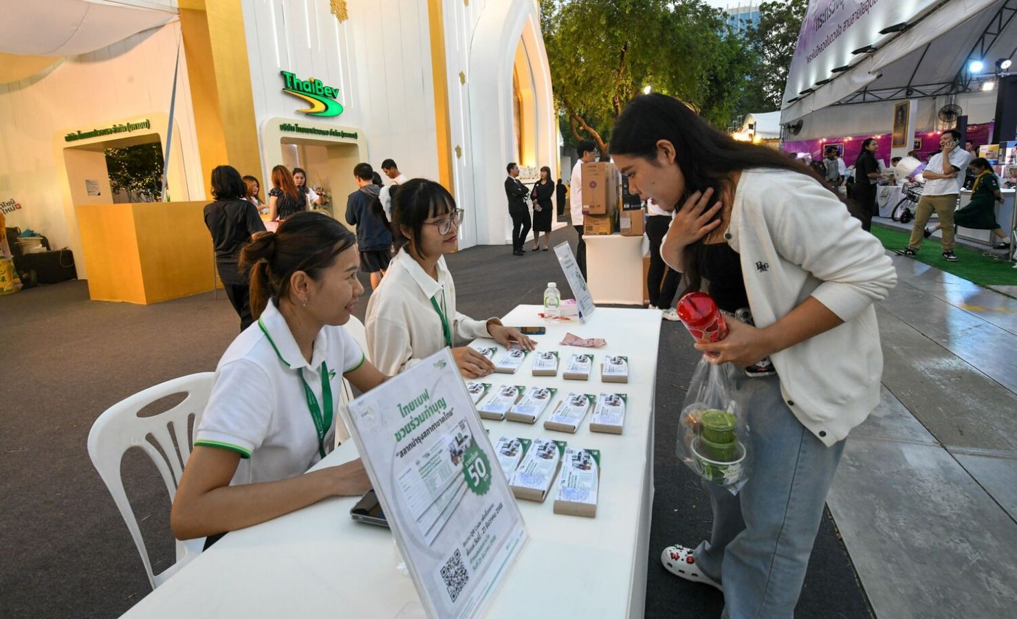 พร้อมสานต่อพระราชปณิธานผ่านแนวคิด “สายใยแผ่นดิน” ด้วยการสรรค์สร้างบูทไทยเบฟให้เป็นพื้นที่แห่งการแบ่งปัน และร่วมสร้างแรงบันดาลใจในการพัฒนาคุณภาพชีวิตอย่างยั่งยืน สานต่อแนวพระราชดำริแห่งการสร้างอาชีพ ควบคู่กับการอนุรักษ์ป่า และน้ำ เพื่อความยั่งยืนของแผ่นดินไทย พร้อมเชิญชวนเยี่ยมชมบูทกิจกรรมไทยเบฟ และนิทรรศการเผยแพร่พระราชกรณียกิจของสมเด็จพระนางเจ้าสิริกิติ์ พระบรมราชินีนาถ พระบรมราชชนนีพันปีหลวง ที่นำเสนอเรื่องราวต่าง ๆ ที่ “ไทยเบฟ” ได้มีโอกาสถวายงาน เพื่อร่วมสืบสานแนวพระราชดำริ “ป่ารักน้ำ” สู่ความยั่งยืนของแผ่นดินไทย ที่สะท้อนให้เห็นถึงพลังความร่วมมือจากทุกภาคส่วนที่ร่วมกันรักษา และฟื้นฟูระบบนิเวศของประเทศให้คงอยู่คู่คนไทยต่อไป