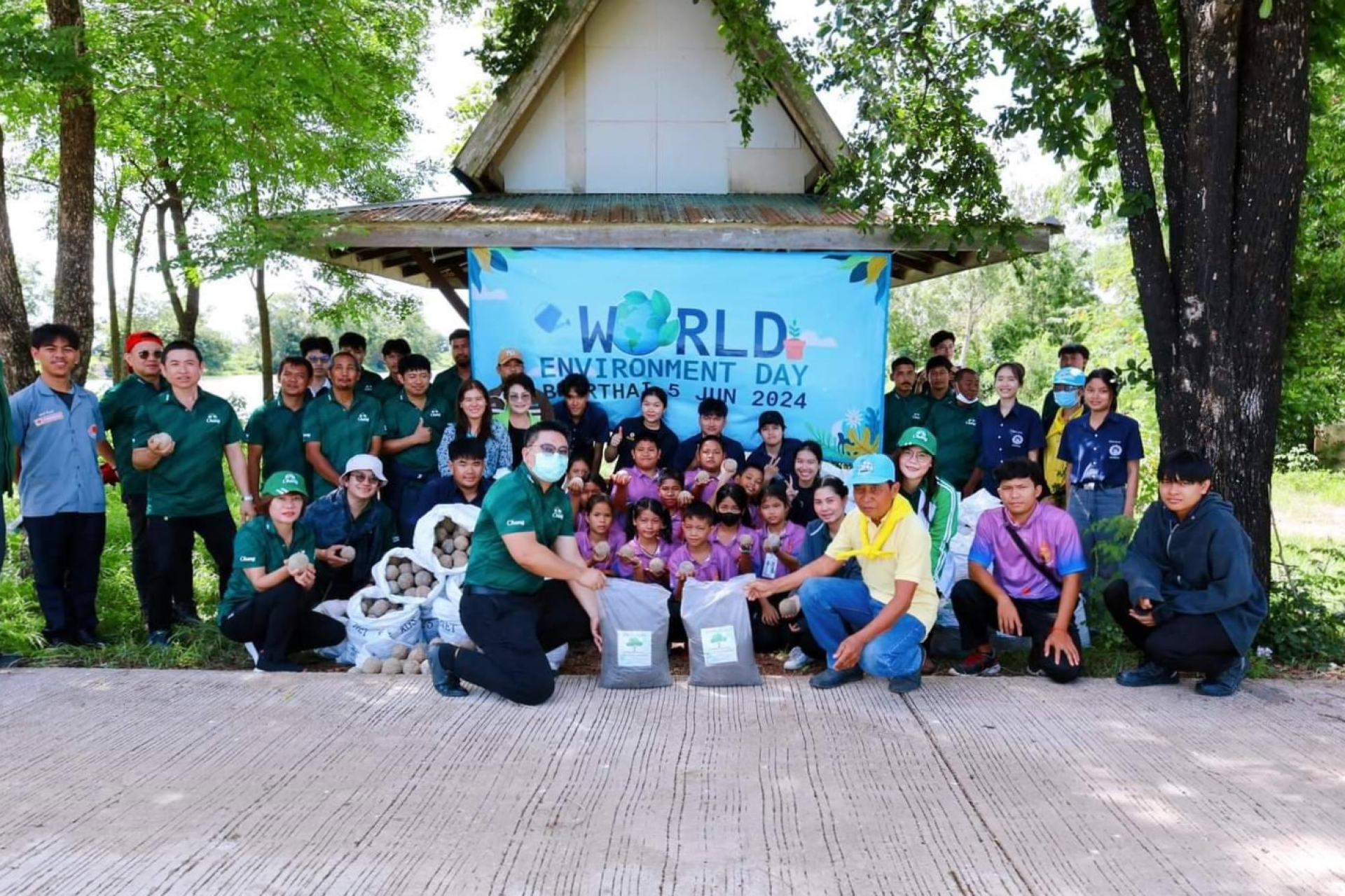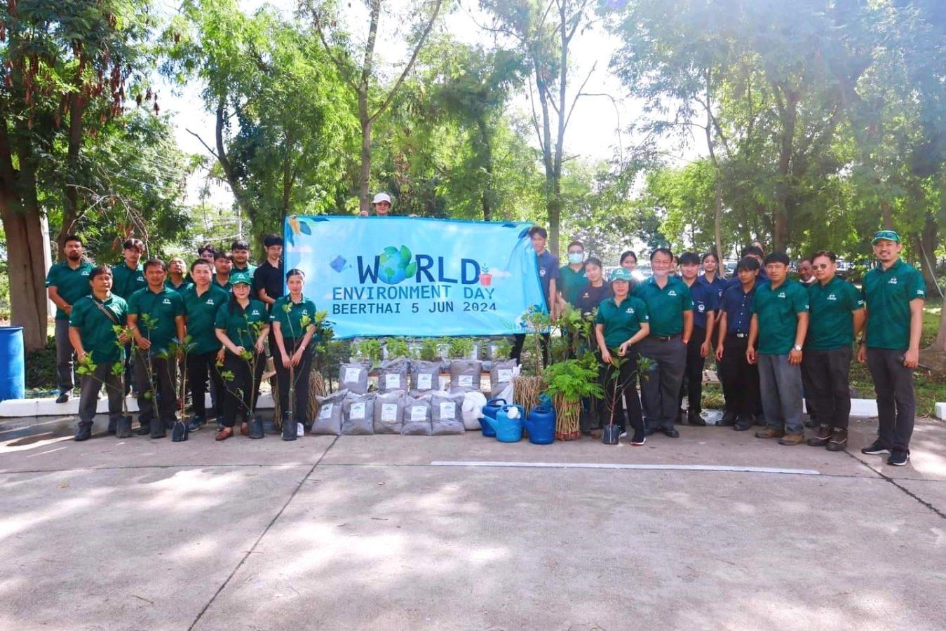 ตามที่องค์การสหประชาชาติ (United Nations) ประกาศให้ปีนี้ มีแนวคิดการรักษาสิ่งแวดล้อม ในหัวข้อ “การฟื้นฟูผืนดิน ทะเลทรายและการฟื้นคืนกลับจากภัยแล้ง” หรือ “Land Restoration, Desertification & Drought Resilience” ในโอกาสวันสิ่งแวดล้อมโลก หรือ World Environment Day 2024 บริษัท เบียร์ไทย (1991) จำกัด (มหาชน) ตัวแทนพนักงาน จิตอาสา หน่วยงานราชการท้องถิ่น โรงเรียน และชุมชนแม่ลาด จึงร่วมกันจัดกิจกรรมด้านสิ่งแวดล้อม ตามเป้าหมาย ISO14001 การปล่อยก๊าซเรือนกระจกเป็นศูนย์ (Net Zero Emission) ปลูกต้นไม้ 600 ต้น ใช้สารปรับปรุงดินจาก By Product และโยน EM Ball จำนวน 18,000 ลูก เพื่อปรับสภาพน้ำในเขตโรงงานและชุมชนรอบข้าง เพิ่มความอุดมสมบูรณ์ของระบบนิเวศ เป็นแหล่งอาศัยของสิ่งมีชีวิต อีกทั้งยังเพิ่มพื้นที่สีเขียวและเป็นแหล่งดูดซับก๊าซคาร์บอนไดออกไซด์
