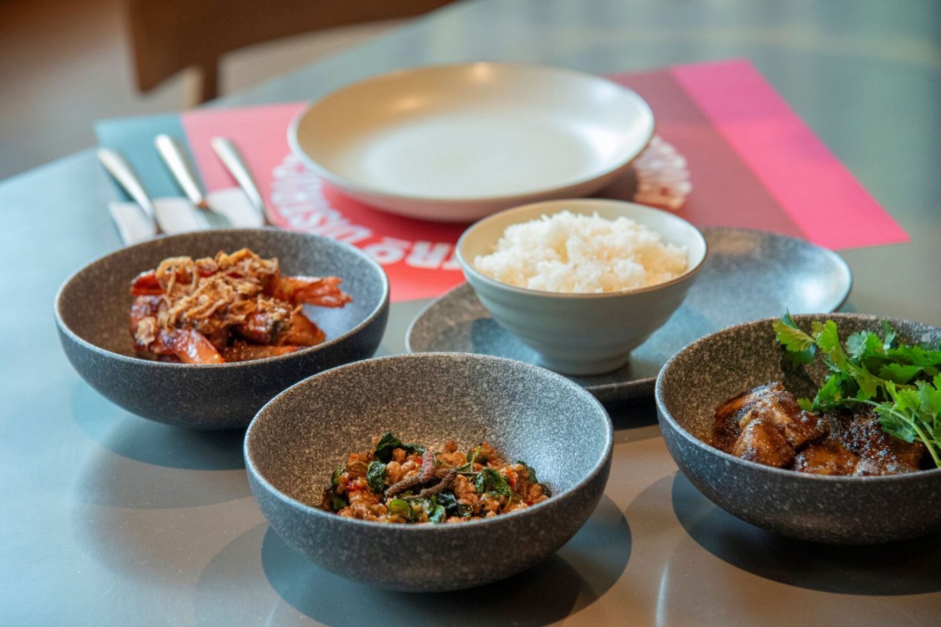 - ร้าน KHAO MUN BISTRO by CHEF POM เชฟป้อม – ธนรักษ์ ชูโต ยกระดับข้าวมันไก่ไหหลำให้กลายเป็นข้าวราดหน้าหลากสไตล์ ข้าวหอมมันที่หุงด้วยมันไก่จนได้กลิ่นหอมเฉพาะตัว จับคู่กับหน้าอื่น ๆ เป็นความอร่อยหลากหลายสไตล์ที่ลงตัว เสิร์ฟคู่ซุปปลาเสฉวนรสกลมกล่อมที่ช่วยเติมเต็มรสชาติให้สมบูรณ์แบบ