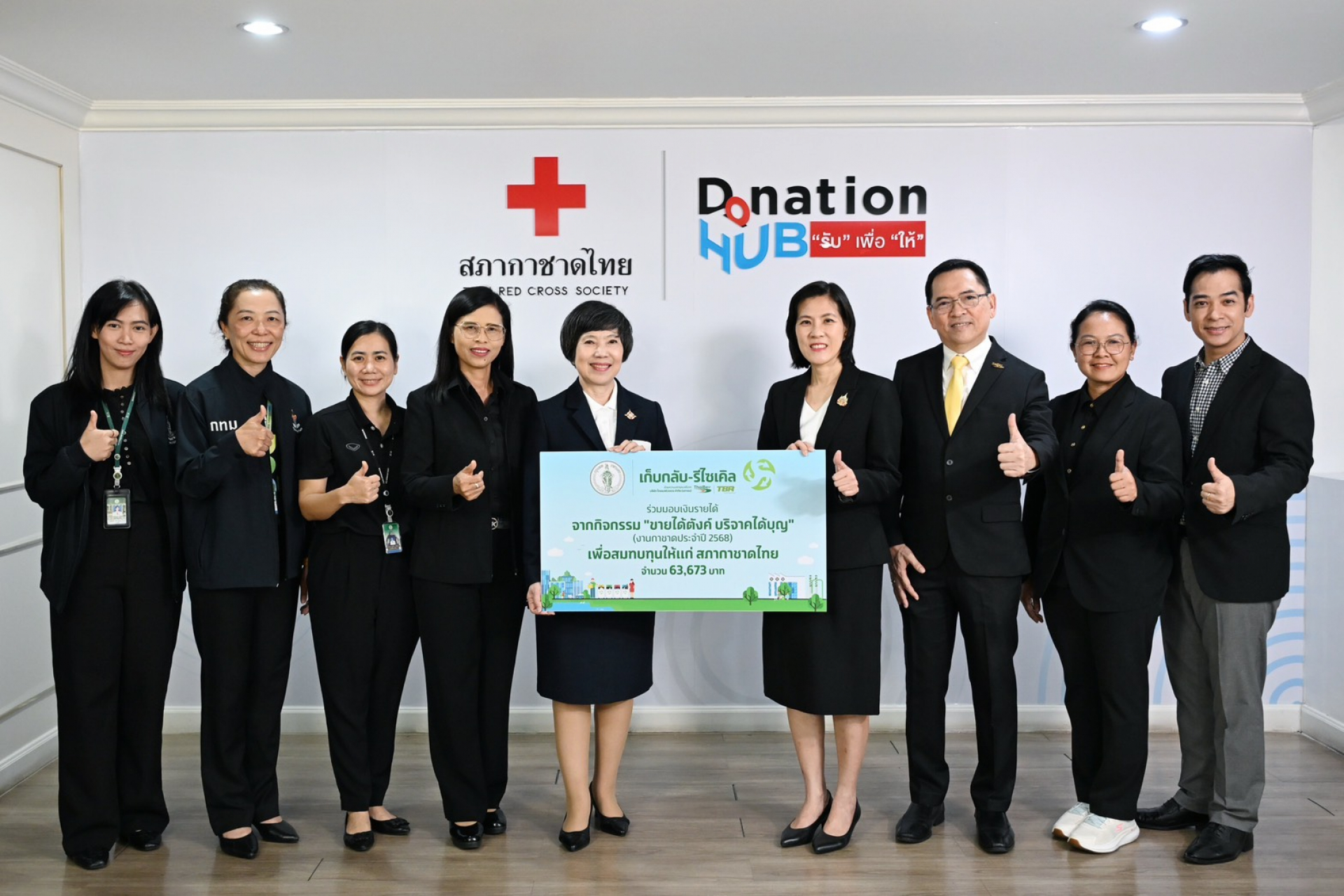 คุณภาวินี ไชยสิทธิ์ ผู้อำนวยการโครงการเพื่อการพัฒนาสังคม บริษัท ไทยเบฟเวอเรจ จำกัด (มหาชน) เป็นผู้แทนมอบรายได้จากกิจกรรม “ขายได้ตังค์ บริจาคได้บุญ” ซึ่งจัดขึ้นภายในงานกาชาด ประจำปี 2568 ที่ผ่านมา ภายใต้ “โครงการเก็บกลับ-รีไซเคิล” โดยบริษัท ไทยเบฟเวอเรจ รีไซเคิล จำกัด (TBR) ร่วมกับสำนักสิ่งแวดล้อม กรุงเทพมหานคร เพื่อสมทบทุนสภากาชาดไทย เป็นจำนวนเงิน 63,673 บาท ให้แก่ คุณจันทร์ประภา วิชิตชลชัย รองผู้อำนวยการสำนักงานจัดหารายได้ สภากาชาดไทย โดยมี คุณบุญเอนก วรรณพานิชย์ ผู้ช่วยกรรมการผู้จัดการ บริษัท ไทยเบฟเวอเรจ รีไซเคิล จำกัด และคุณวรนุช สวยค้าข้าว ผู้อำนวยการสำนักสิ่งแวดล้อม กรุงเทพมหานคร เข้าร่วม ณ สภากาชาดไทย