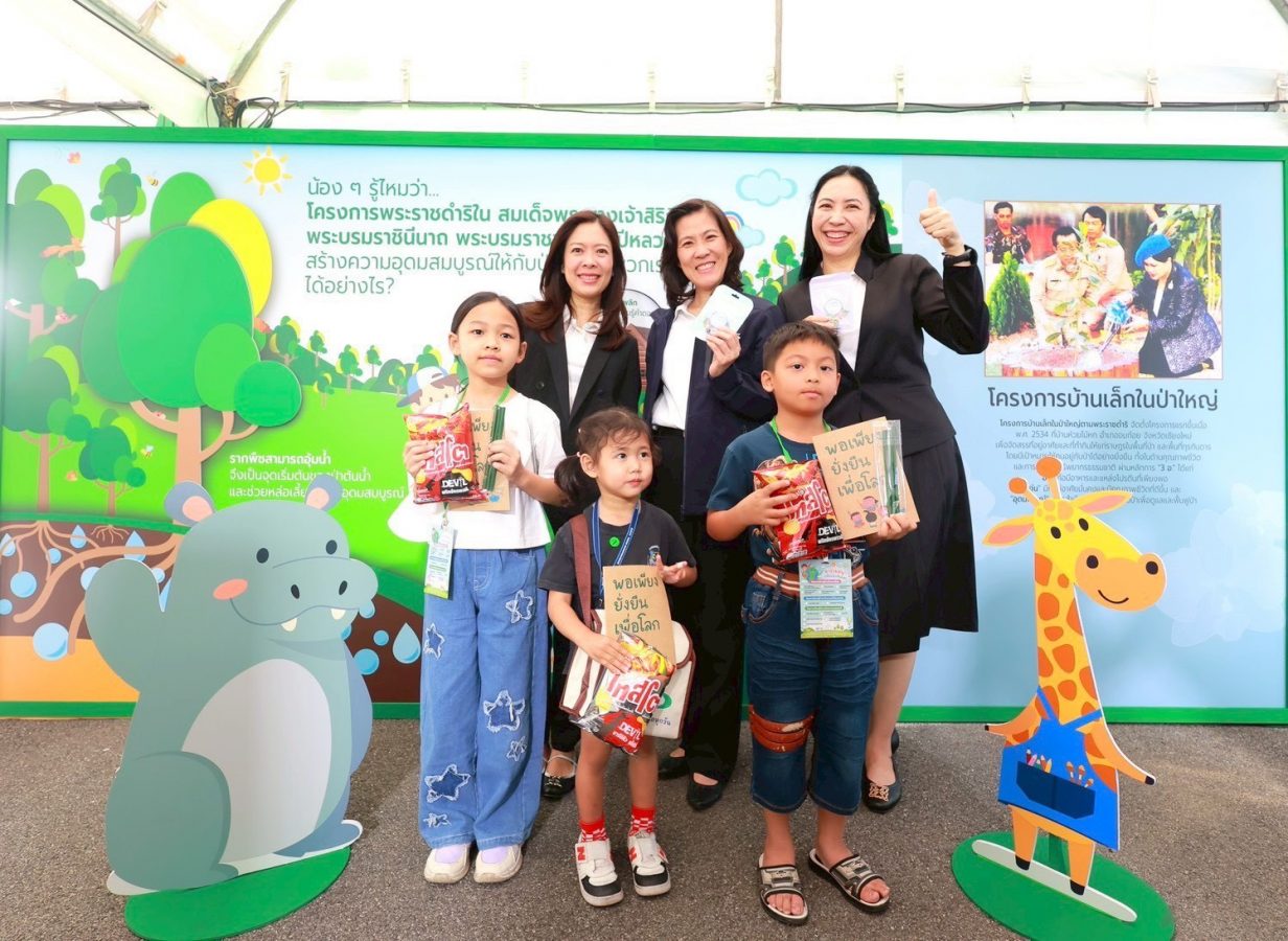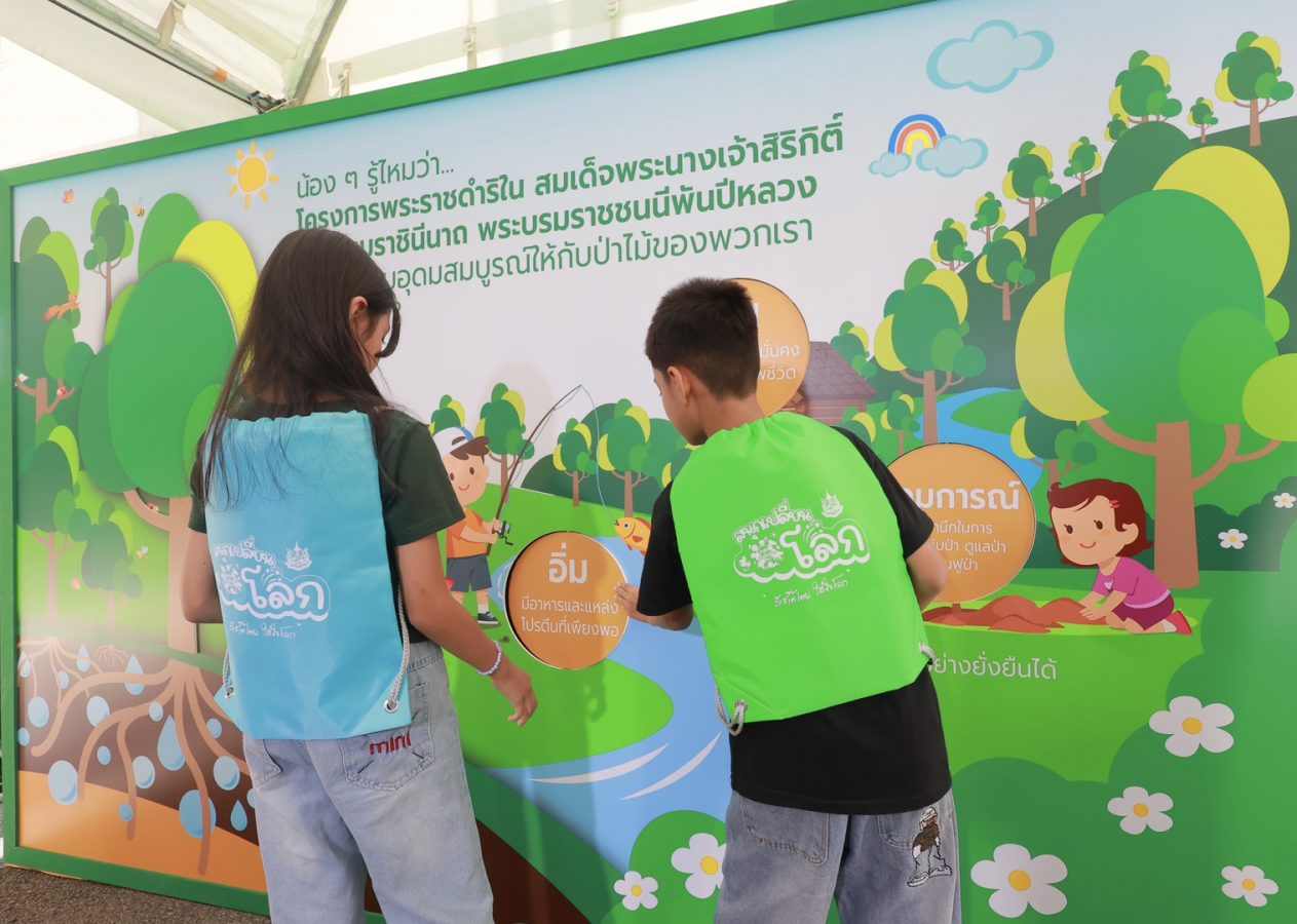 นอกจากนี้ยังมีนิทรรศการแห่งแรงบันดาลใจที่ถ่ายทอดพระราชปณิธานในการดูแลและฟื้นฟู “ป่าและน้ำ” หัวใจสำคัญของชีวิตและธรรมชาติ ผ่านโครงการพระราชดำริของสมเด็จพระนางเจ้าสิริกิติ์ พระบรมราชินีนาถ พระบรมราชชนนีพันปีหลวง โดยน้อง ๆ ได้เรียนรู้การอนุรักษ์ทรัพยากรธรรมชาติผ่านสื่อที่เข้าใจง่าย ทั้งโครงการป่ารักน้ำและโครงการบ้านเล็กในป่าใหญ่ ที่ช่วยให้คนอยู่ร่วมกับป่าได้อย่างสมดุลและยั่งยืน เพื่อให้น้อง ๆ เกิดความเข้าใจว่า “รากพืชสามารถอุ้มน้ำ” ซึ่งเป็นแหล่งกำเนิดของป่าต้นน้ำ สร้างความอุดมสมบูรณ์ของระบบนิเวศ เพื่อส่งต่อแรงบันดาลใจในการดูแล ป่า น้ำ และโลกของเรา ให้คงอยู่อย่างยั่งยืน