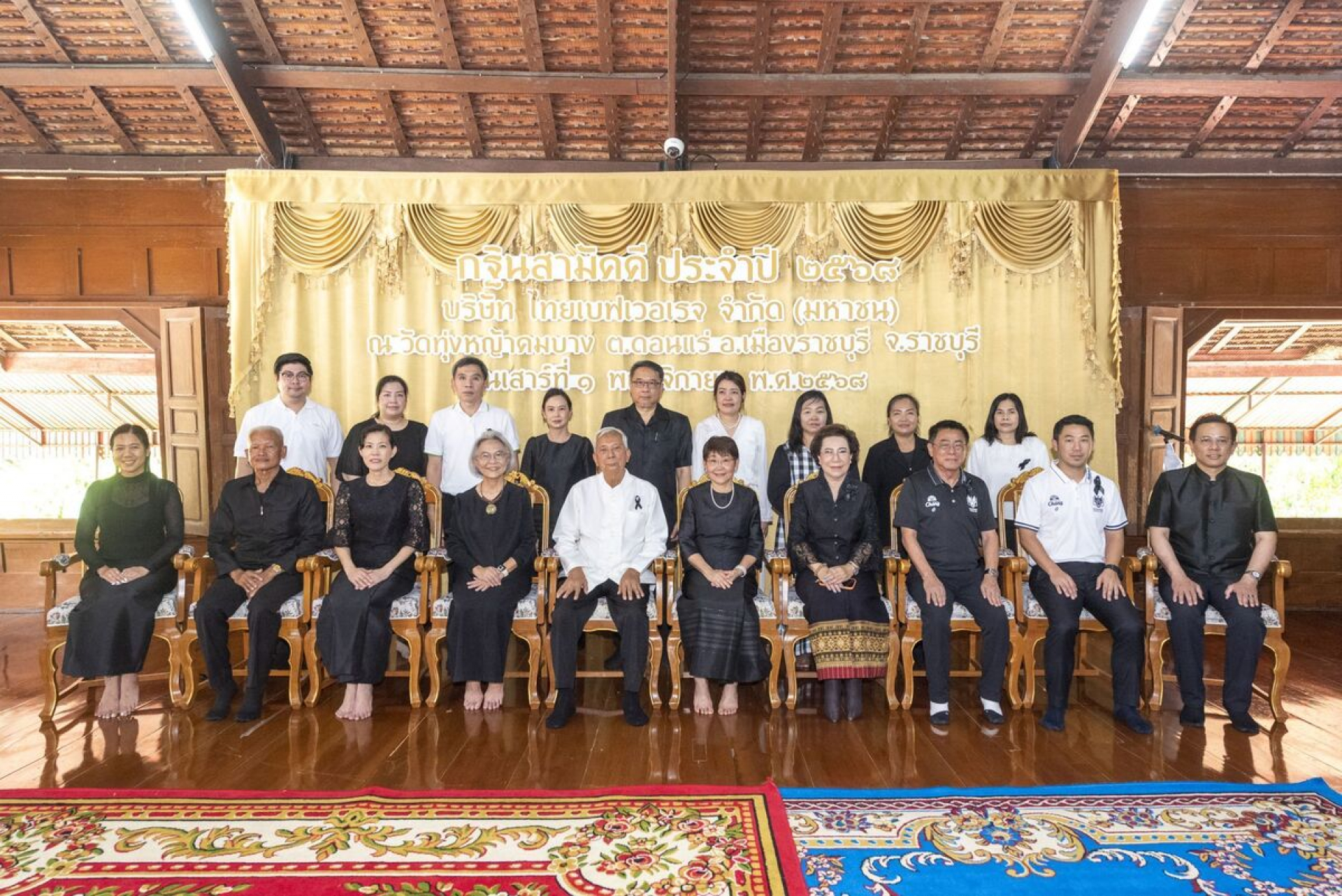 โดยมี คุณบุษยา มาทแล็ง กรรมการอิสระ บริษัท ไทยเบฟเวอเรจ จำกัด (มหาชน) เป็นประธานในพิธีทอดถวายกฐินสามัคคี พร้อมด้วยคณะที่ปรึกษา ผู้บริหาร พนักงานไทยเบฟ ร่วมด้วยแขกผู้มีเกียรติจากหน่วยงานภาครัฐและเอกชน รวมถึงผู้มีจิตศรัทธาสาธุชนทั่วไปร่วมในพิธี ทั้งนี้ ชาวราชบุรีและจังหวัดใกล้เคียงยังได้ร่วมออกโรงทานอย่างเนืองแน่นเพื่อร่วมอนุโมทนาบุญ