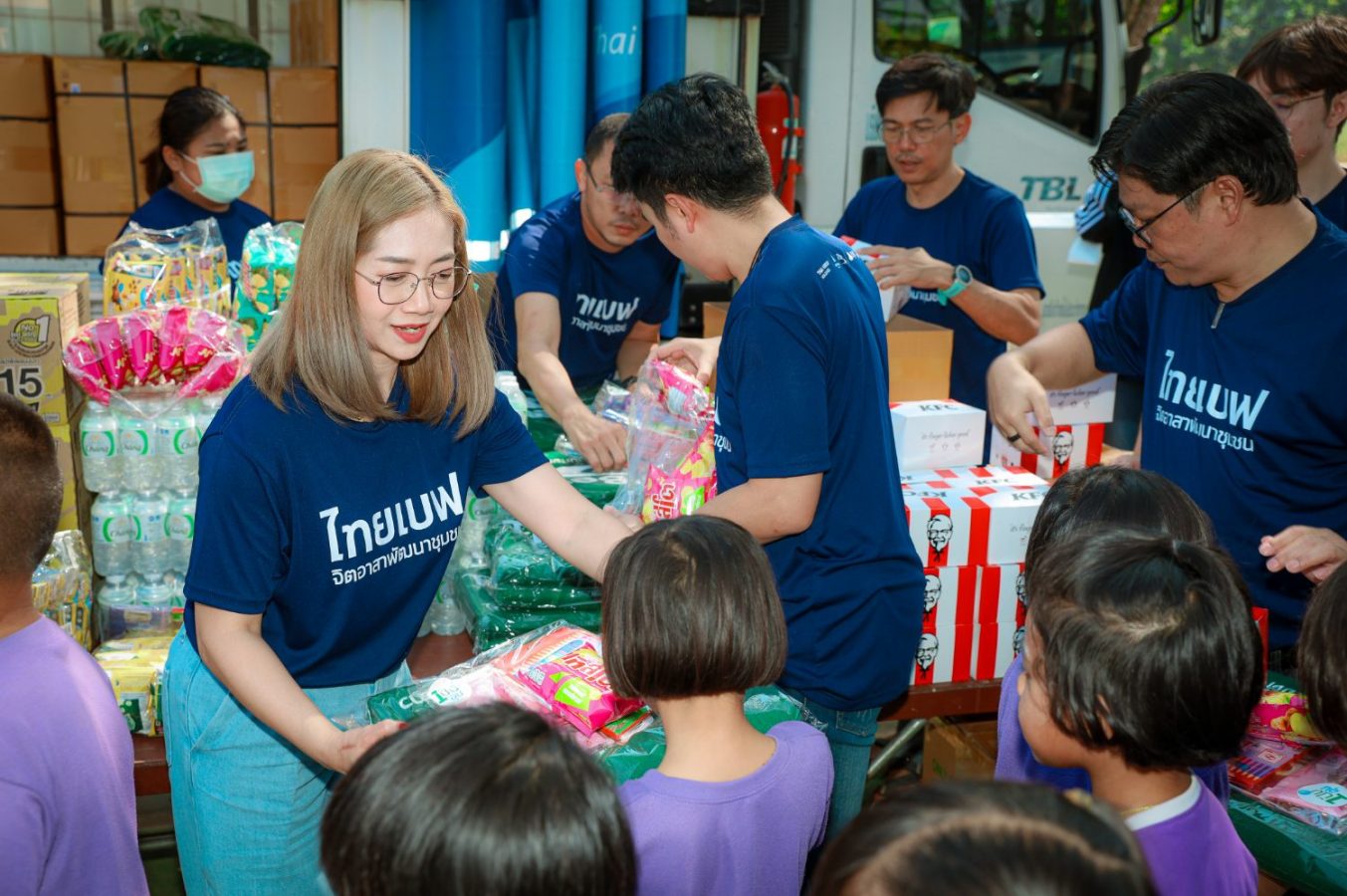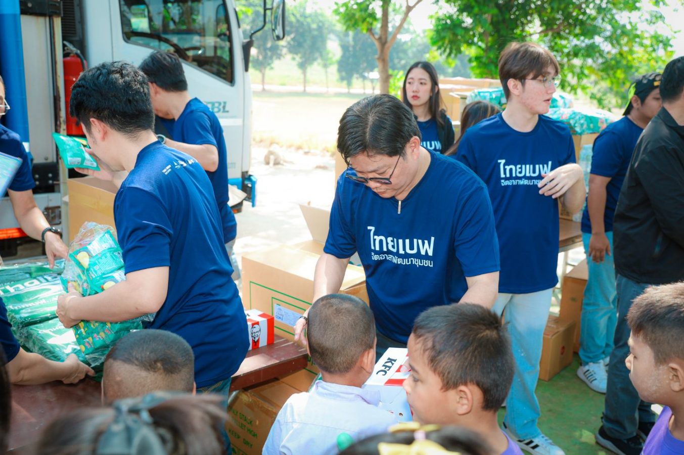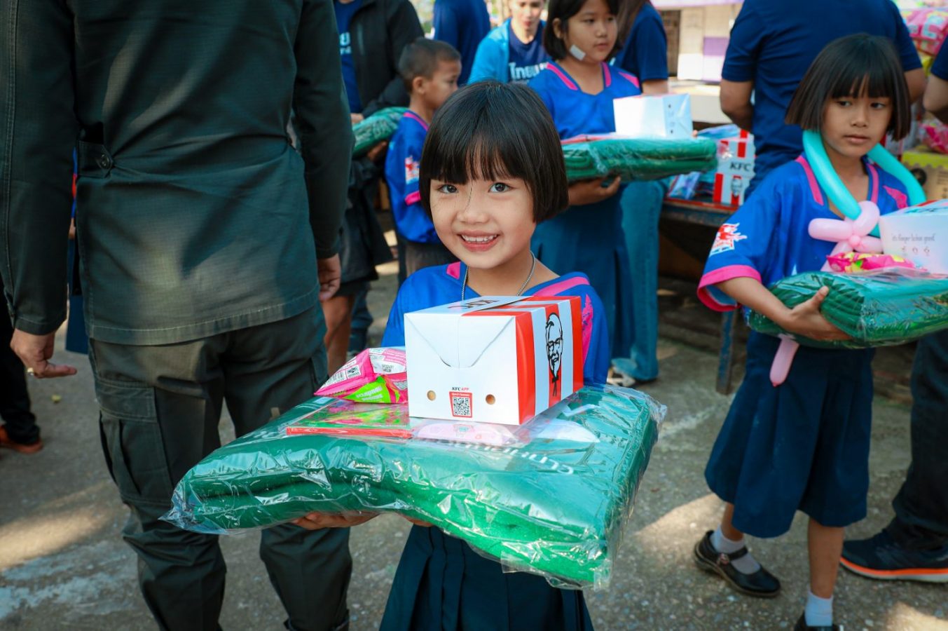 งานนี้ยังได้รับเกียรติจาก คุณอดุลย์ จิตยานันท์ ผู้เชี่ยวชาญให้คำปรึกษาด้านการบริหารความสัมพันธ์และการสร้างประโยชน์ สำนักทรัพยากรบุคคล มาร่วมกิจกรรมในครั้งนี้ ซึ่งกิจกรรม 1 ปัน 1 อุ่นในครั้งนี้ ทางฝ่ายฯ ได้เป็นตัวแทนเพื่อนพนักงานที่ร่วมบุญซื้อผ้าห่มไทยเบฟกว่า 1000 ผืน ไปมอบให้กับน้อง ๆ รวมไปถึงอุปกรณ์ที่ใช้สำหรับการเรียน ไม่ว่าจะเป็นชุดเครื่องเขียน สีไม้ อีกทั้งยังมอบเมนูพิเศษให้กับน้อง ๆ เป็น Boxset KFC ที่ส่งตรงจากครัว เพื่อเพิ่มความสุขในมื้อกลางวัน จากนั้นพี่ๆ จิตอาสาที่ตั้งใจมามอบความสุข ต่างพาน้อง ๆ ทำกิจกรรมเล็ก ๆ น้อย ๆ ทั้งแจกขนม แต่งตัวเป็นโบโซ่บิดลูกโป่งรูปต่าง ๆ ให้น้อง ๆ ได้จินตนาการตามไปด้วย บรรยากาศภายในงานเต็มไปด้วยความอบอุ่น และความสุขที่ทุกคนตั้งใจมามอบให้ เรียกได้ว่าสุขทั้งผู้ให้และผู้รับกันเลยทีเดียว