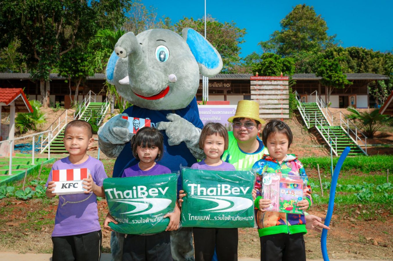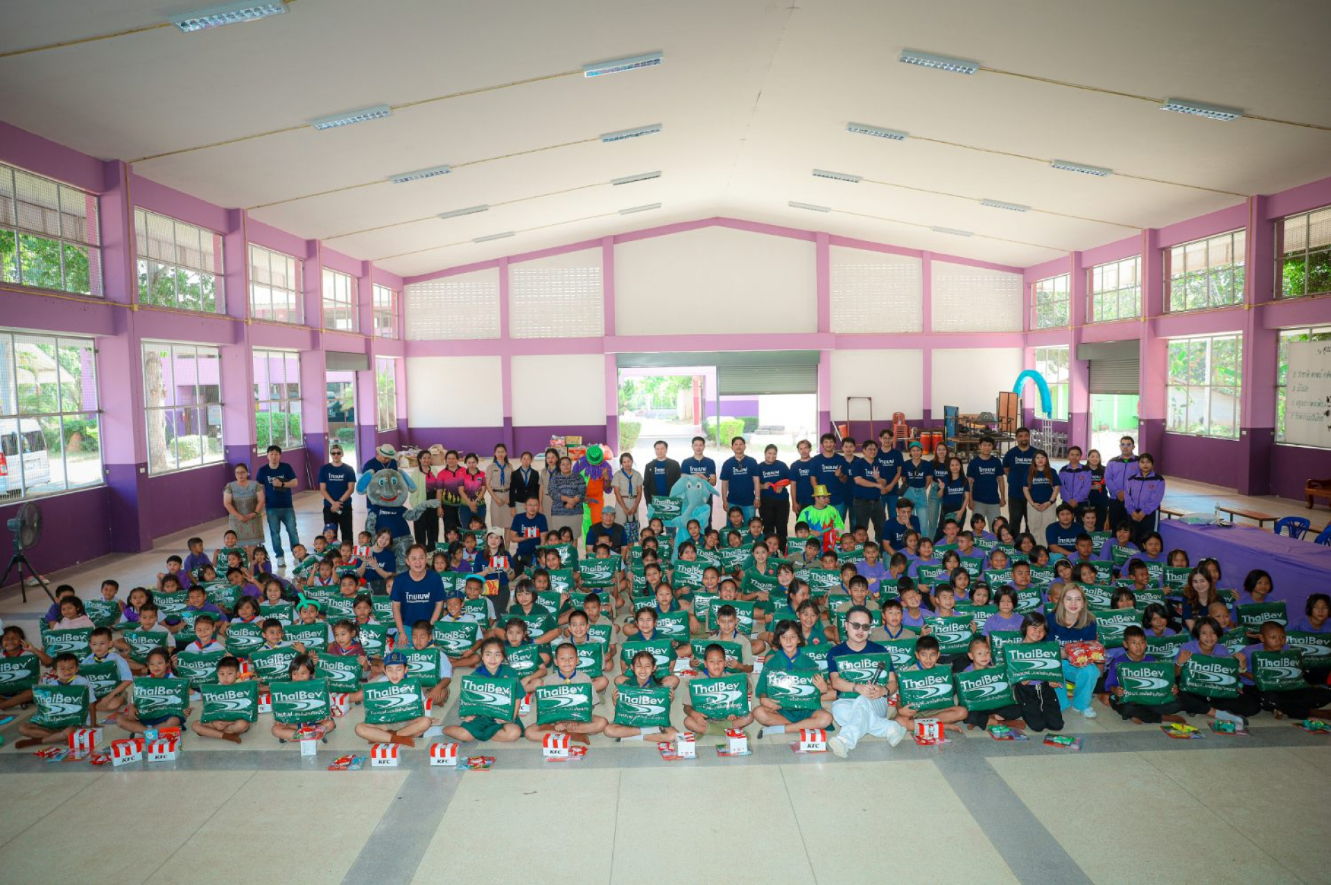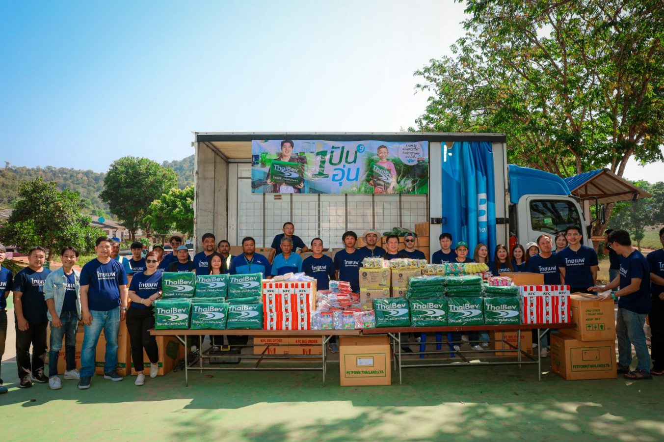 ฝ่ายบริหารความสัมพันธ์และการสร้างประโยชน์ สำนักทรัพยากรบุคคล บริษัทไทยเบฟเวอเรจ จำกัด (มหาชน) และเพื่อนพนักงานจิตอาสาจาก 6 บริษัท ได้แก่ บริษัท ไทยเบฟเวอเรจ จำกัด (มหาชน) บริษัท ไทยเบฟเวอเรจ โลจิสติก จำกัด บริษัท ป้อมทิพย์ จำกัด (2012) บริษัท แสงโสม จำกัด บริษัท สุรากระทิงแดง (1988) จำกัด และบริษัท ยูไนเต็ด ไวน์เนอรี่ แอนด์ดิสทิลเลอรี่ จำกัด ที่มาร่วมกันส่งมอบความอบอุ่นและมอบความสุขให้กับน้อง ๆ ถึงจังหวัดประจวบคีรีขันธ์ ในกิจกรรม 1 ปัน 1 อุ่น ปีที่ 9 จัดขึ้นในวันที่ 8 มกราคม 2568 ที่ผ่านมา โดยเดินทางไปมอบความสุขกันถึง 3 สถานที่ 7 โรงเรียน